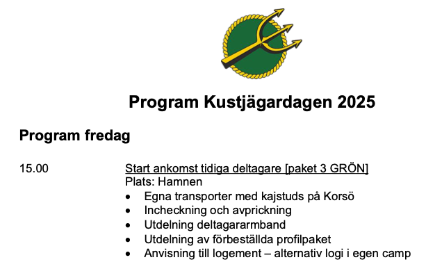 Träffen planerar vi till Korsö enligt traditionen. Nyhet för i år är dock att vi lyfter möjligheten att anlända redan på fredag med ett utökat helgprogram med ingående förplägnad. Men vi samlas på Korsö under lördagen då även anhöriga är välkomna.
